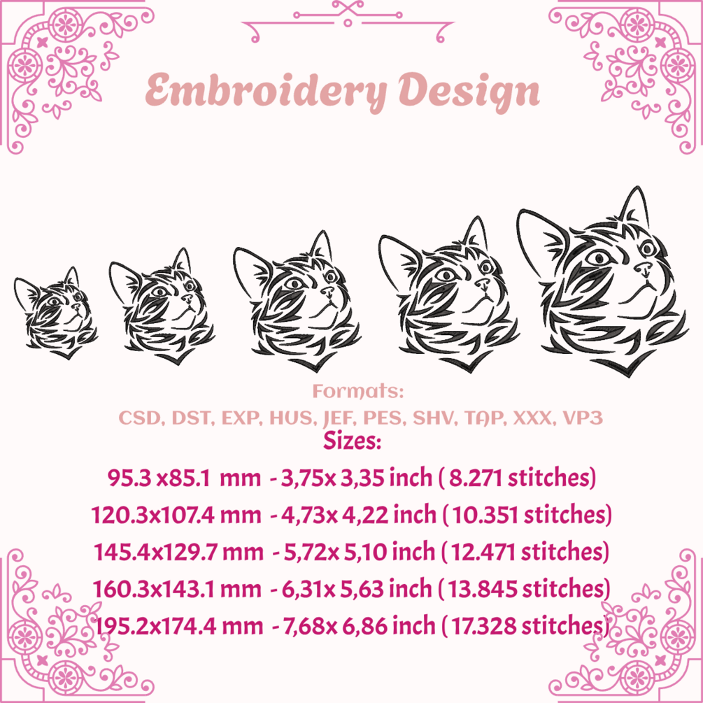 This is a digital file of design for embroidery machines. Kitten face in one color for your embroidery machine, you can use it in sweatshirts, t-shirts, totebags, wherever you want.